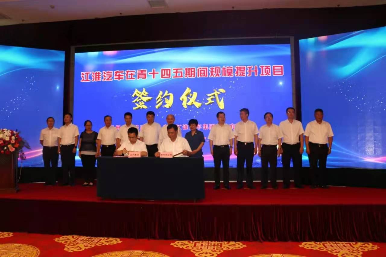 7月9日上午,江淮汽車在青“十四五”期間規(guī)模提升項目簽約儀式舉行。江汽集團黨委書記、董事長項興初,江汽集團副總經(jīng)濟師、輕型車制造公司總經(jīng)理宋華,市委副書記、市長宋偉偉,副市長任光學,山東東虹工貿(mào)有限公司董事長閆志忠等出席簽約儀式。