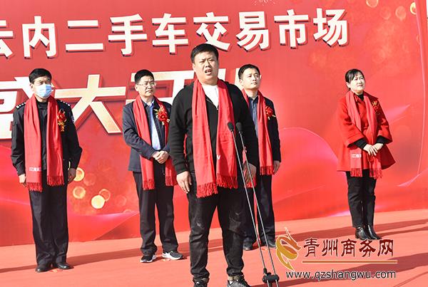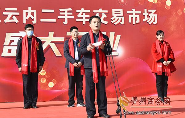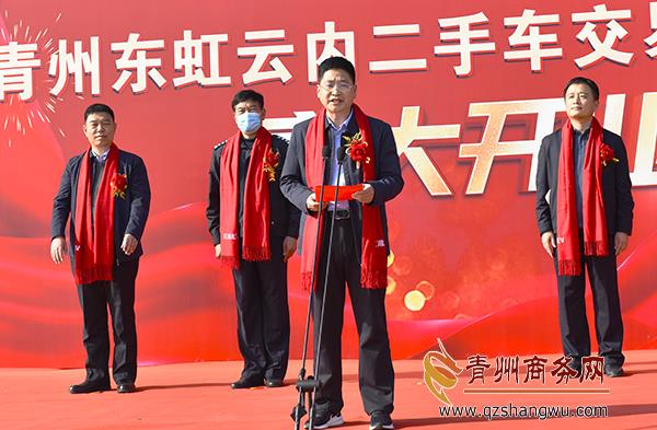 青州市商務局黨組書記、局長唐健在開業(yè)儀式上發(fā)表講話并宣布“青州東虹二手車交易市場正式啟動!”