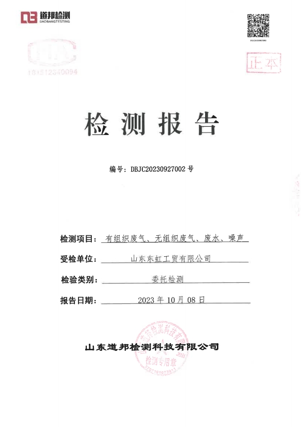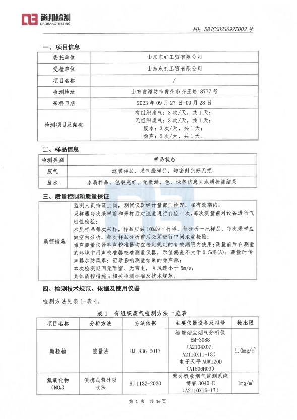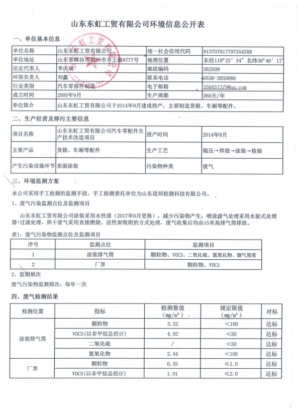 山東東虹工貿(mào)有限公司環(huán)境信息公開表